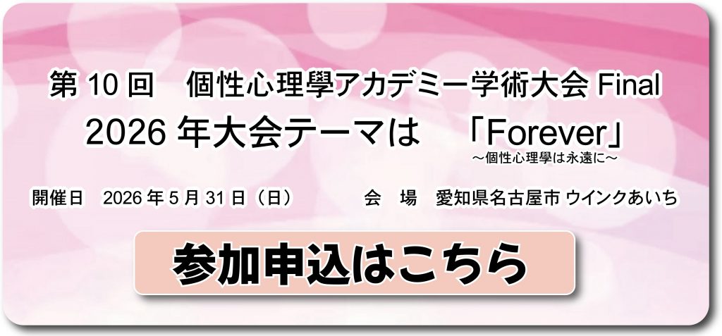 第10回個性心理學アカデミー学術大会 参加申込
